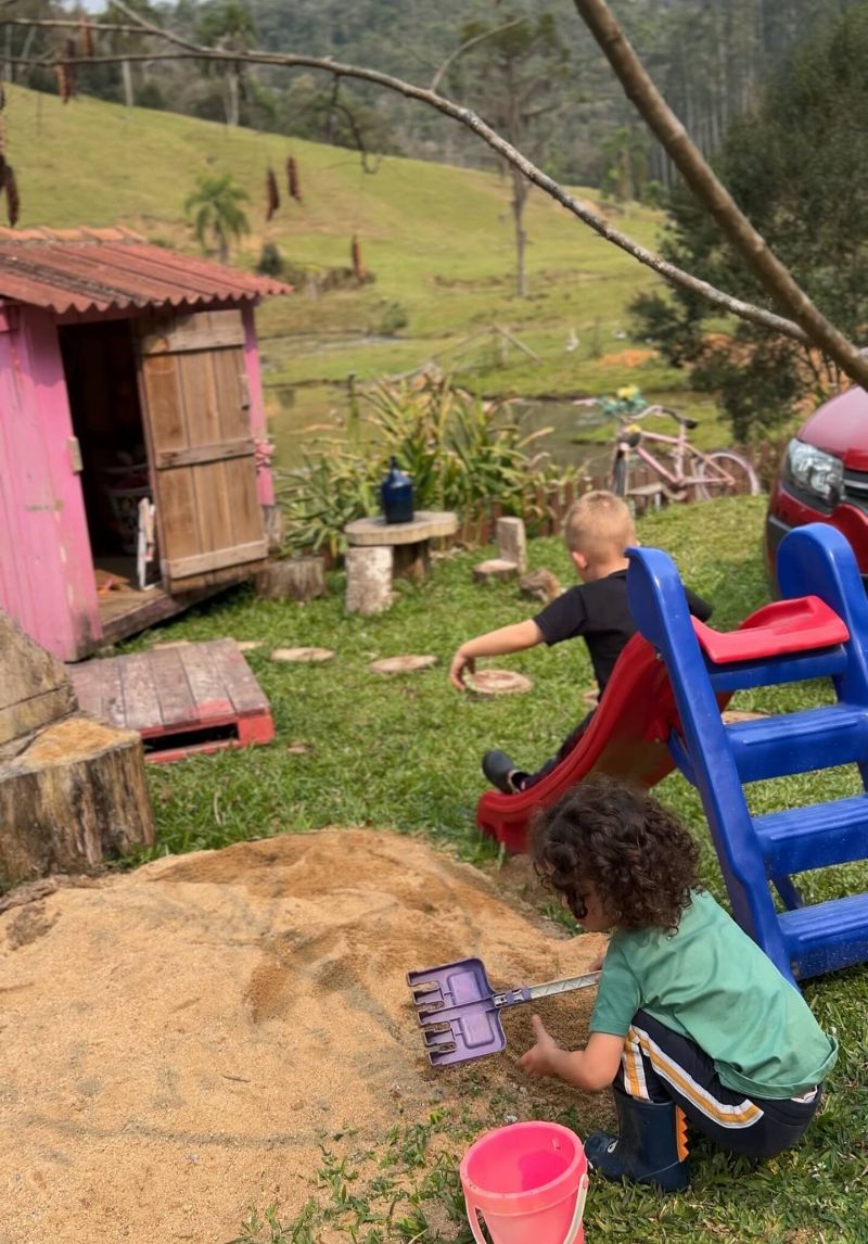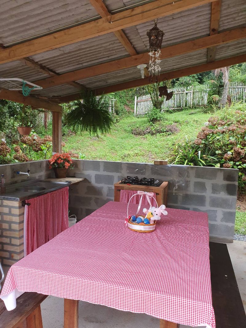 O espaço de Recanto Campestre comporta até 10 pessoas, com acomodações disponíveis na casinha rosa e no rancho de lazer. A cozinha é completa e equipada, com todos os eletrodomésticos necessários, além de um fogão à lenha e churrasqueira.