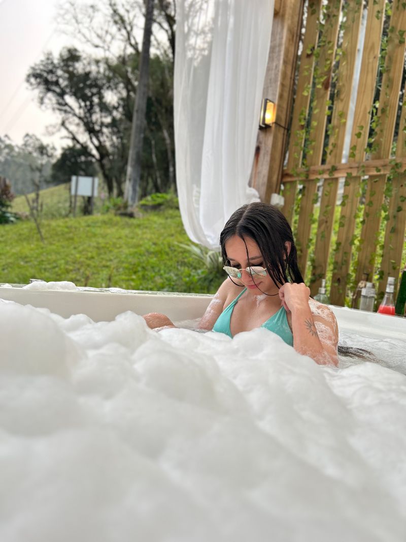 O Recanto Campestre oferece uma jacuzzi ondeos hóspedes podem relaxar e desfrutar de um momneto de descanso.